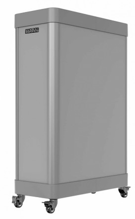 Корпус выполнен из прочного АВС-пластика и дополнительно усилен алюминиевыми элементами. Для большей мобильности имеет ролики со стопорными рычаги для фиксации на месте.