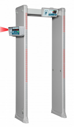 Пирометр, встроенный в отдельный блок управления, определяет температуру входящих в створ детектора до сотых градуса. При превышении предварительно настроенного предела подается сигнал тревоги на главный блок управления металлодетектором, после чего срабатывает звуковая сирена и подается сигнал на закрытие дверей или турникетов (при наличии дополнительной опции – реле «сухой контакт»).
