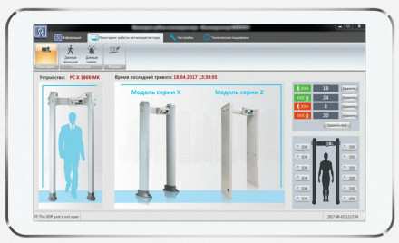 Помимо функции мониторинга и данных о проходах/тревогах, в программе можно настроить тип работы металлодетектора, его параметры, по зонам, по заложенным программам. Есть предустановленные сценарии настроек, их общее количество более 50 (например: МЧС, спортзалы, суды, офисы, гостиницы, банки, тюрьмы, КПП, посольства, метеостанции, телевидение, таможня, бассейны и другие). Также можно настраивать тип работы вручную.